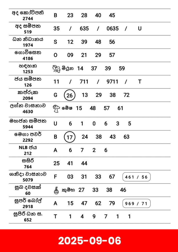 2025-09-06 |Lottery Results
