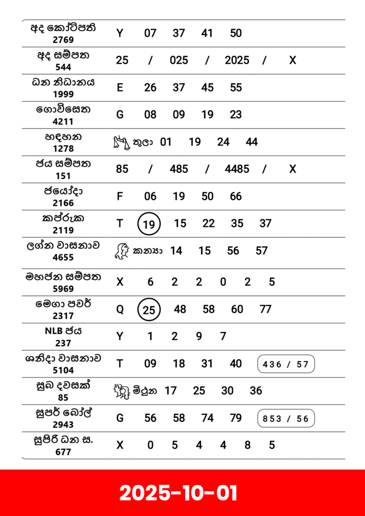 Lottery Results 2025-10-01 |Lottery Results Byadmin October 1, 2025 7:20 amOctober 27, 2025 7:21 am Lottery Results Share with a friend