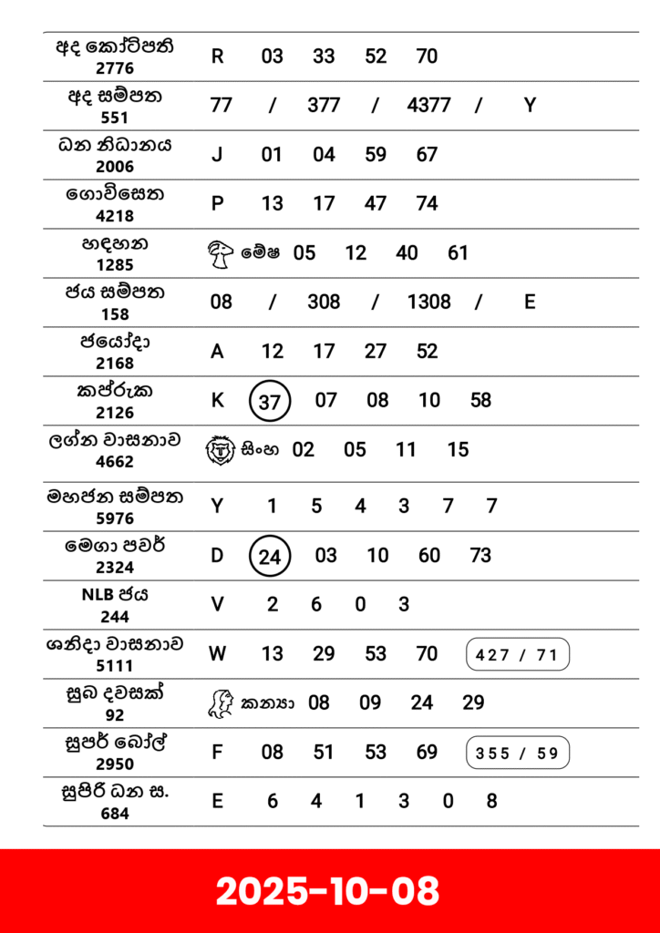 Lottery Results 2025-10-08 |Lottery Results Byadmin October 8, 2025 7:25 amOctober 27, 2025 7:25 am Lottery Results Share with a friend