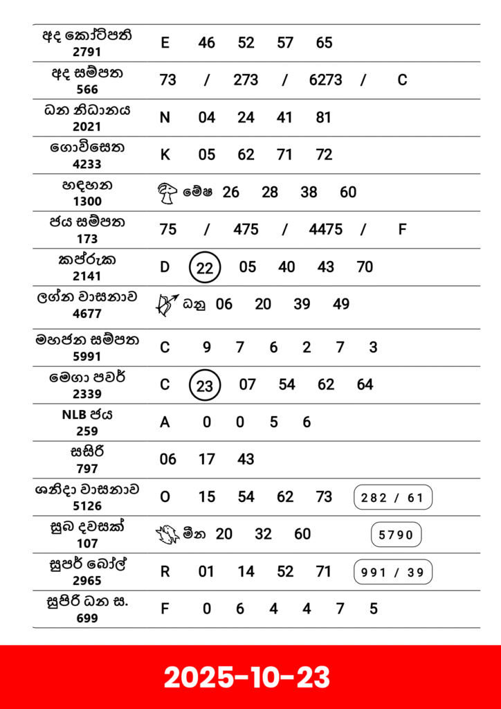 Lottery Results 2025-10-23 |Lottery Results Byadmin October 23, 2025 7:36 amOctober 27, 2025 7:36 am Lottery Results Share with a friend