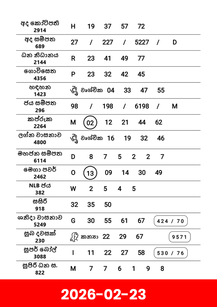 Lottery Results 2026-02-23 |Lottery Results Byadmin February 24, 2026 8:07 amFebruary 26, 2026 8:07 am Lottery Results Share with a friend